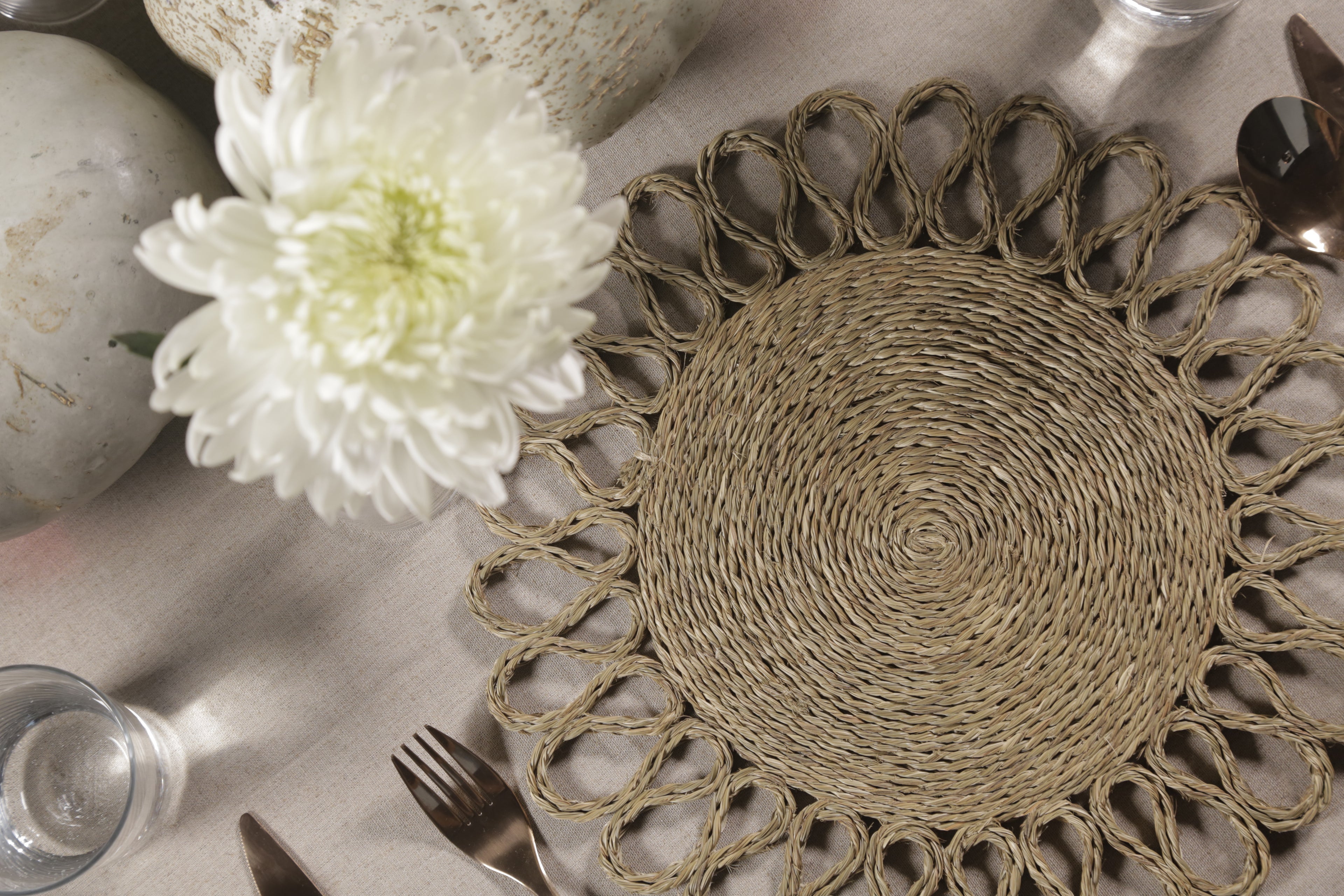 Festive Coloured Grasswoven Placemats with Scalloped Edges
